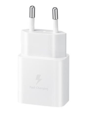 Síťová nabíječka Samsung s USB-C portem a nabízí výkon 15 W.