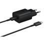 Samsung cestovní nabíječka do sítě s USB-C výstupem, maximálním výkonem 25W a USB-C datový kabel.