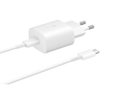 Samsung cestovní nabíječka do sítě s USB-C výstupem, maximálním výkonem 25W a USB-C datový kabel. Disponuje distribucí nabíjecího proudu a napětí Power delivery , který umožní vybrat vždy ten nejvhodnější nabíjecí proud a napětí přímo pro Vaše zařízení. Nabíječka je vhodná nejen pro telefony a příslušenství Samsung, lze jí nabíjet telefony všech značek, případně další příslušenství, které podporuje nabíjení z USB portu. Je vybavena pokročilou několika stupňovou ochranou a to proti přebití, zkratu, přehřátí a přepólování. Vlastnosti: - Maximální výkon 25 W - Výstup USB-C - kabel součástí USB-C na USB-C (1m) - Výstup PDO: 9V/2,77A / PPS: 3,3-5,9V/3A ; 3,3-11V/2,25A - Ochrana proti přebití, zkratu, přehřátí a přepólování
