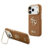 Guess PU Grained 4G Logo Stand Camera Frame Zadní Kryt pro iPhone 17 Pro Brown
