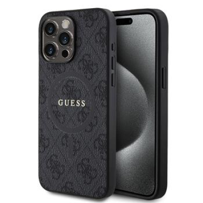 Guess PU Leather 4G Colored Ring MagSafe Zadní Kryt pro iPhone 15 Pro Max Black