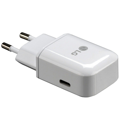 Originální nabíječka LG MCS-N04ER s podporou rychlého nabíjení Qualcomm Quick Charge 3.0. Nabíječ je dodáván bez datového kabelu.