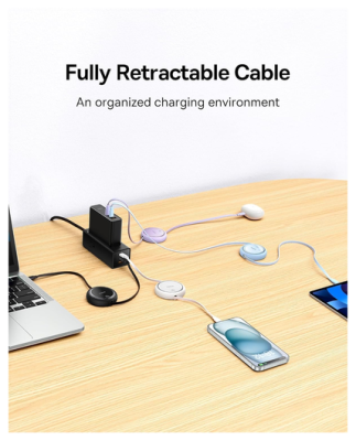 Má vestavěný organizér, takže můžeme kabel upravit na libovolnou délku. Pro rozvinutí kabelu jej jednoduše vytáhněte z obou stran.
