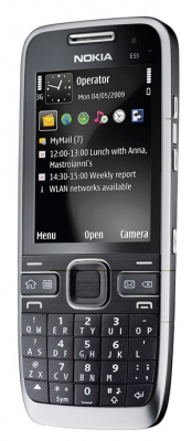 Přístroj disponuje kromě netypické klávesnice (nejedná se totiž přímo o QWERTY, některá písmena nemají vlastní klávesu) také úctyhodnou výdrží, podle dostupných informací dokáže Nokia E55 být na příjmu v GSM síti až 19 dnů.