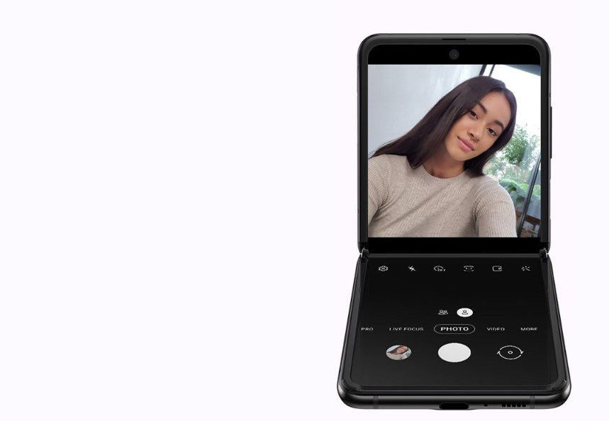 Galaxy Z Flip dokáže udržet displej otevřený v různých úhlech, umožňuje tak zachytit úžasné záběry z dosud nepoznaných perspektiv, které si hrají s vnímáním fotografie a podněcují myšlení. Nové úhly jsou novými pózami.